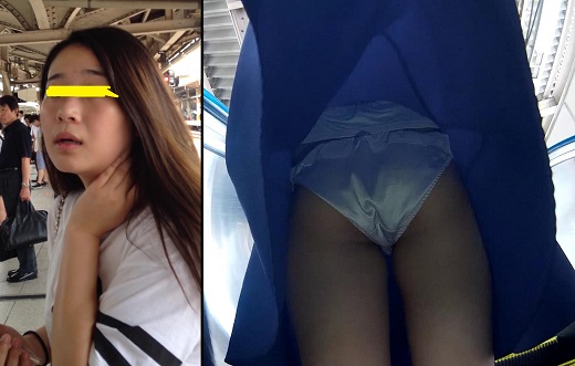 都会の奥さんの下着を下から見上げる
