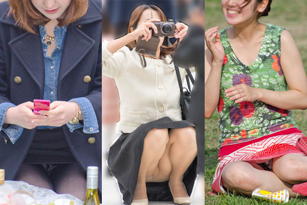 美脚の奥と、カメラ設置しゃがみ娘