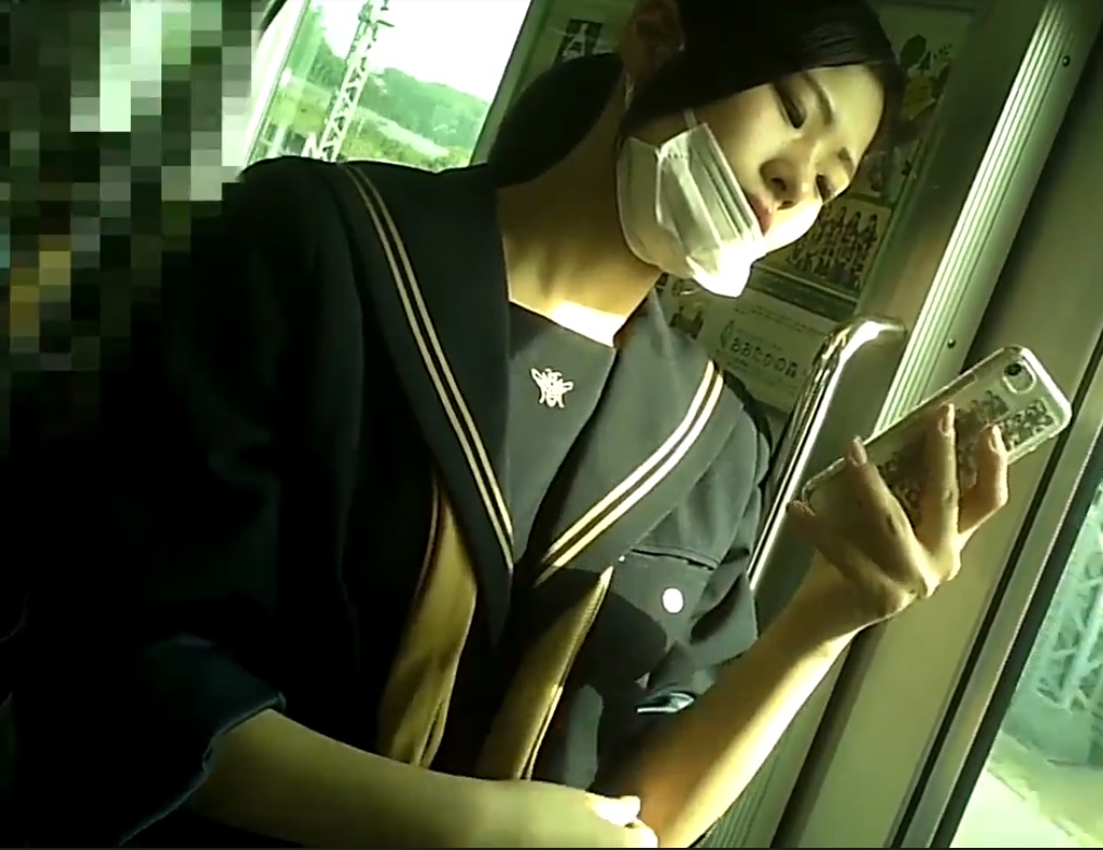 朝の通勤通学で人が多い事に乗じて、ドア脇に立つ JKちゃんの目の前に密着、撮影開始です。 興奮のあまり急接近しすぎて、目を明らかに 泳がせて戸惑っている様子のJKちゃん。 チラチラと目線をたまにもらえるのが、最高に 興奮します。