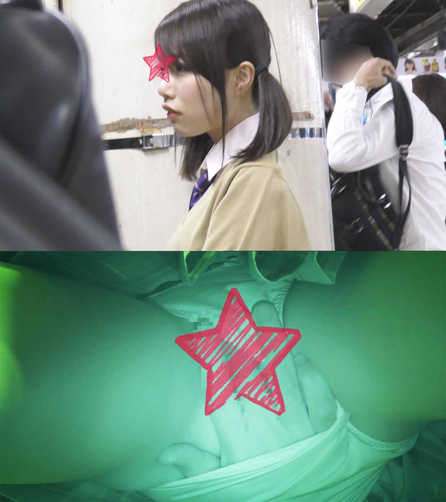 【電車痴漢】顔出し制服JK★膣口からマン