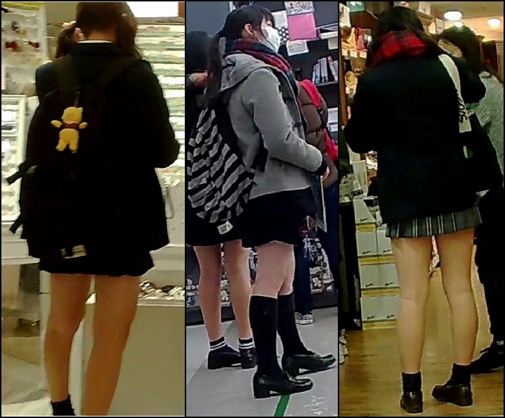 ミニスカフレアにタイトニットのアイドル風JDちゃんです。 スレンダーなスタイル抜群な女の子で、膝上20cmほどありそうなミニスカからスラっと伸びる生足は見事です。 全身撮りでは正面からのフトモモ光量抜群で撮影しています。 中身は白のペチパンから覗く純白サテンパンティでこちらもピント光量良好です。 降り際でお尻を水平気味に撮影していますが その際に左尻側のパンティが食い込んでいるのが分かる程度の透け感はあります。