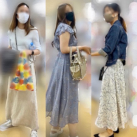 4人目:友達と買い物中。デニムショーツの子の生足も中々エロいですが、本命はデニムスカート の薄桃色P。