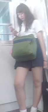 スタイルはよくてミニスカート、顔は普通でショートカットのJKです。足も細めで開き気味だったので純白パンティーが丸見えシーンが多いです。3度ほど近づいて撮影しました。
