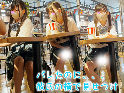 【撮影バレ】ツインテ青チェJKが見せつけ
