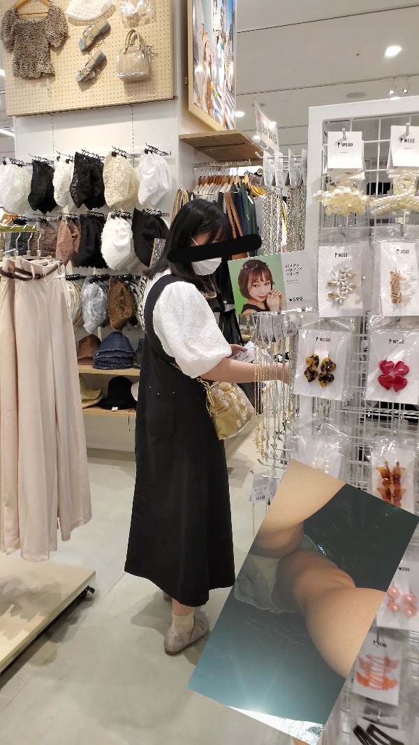 96 黒水玉スカート店員さん 超モロ