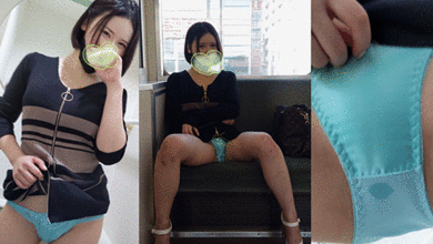 電車内でパンティ露出 染み付きパンチラで