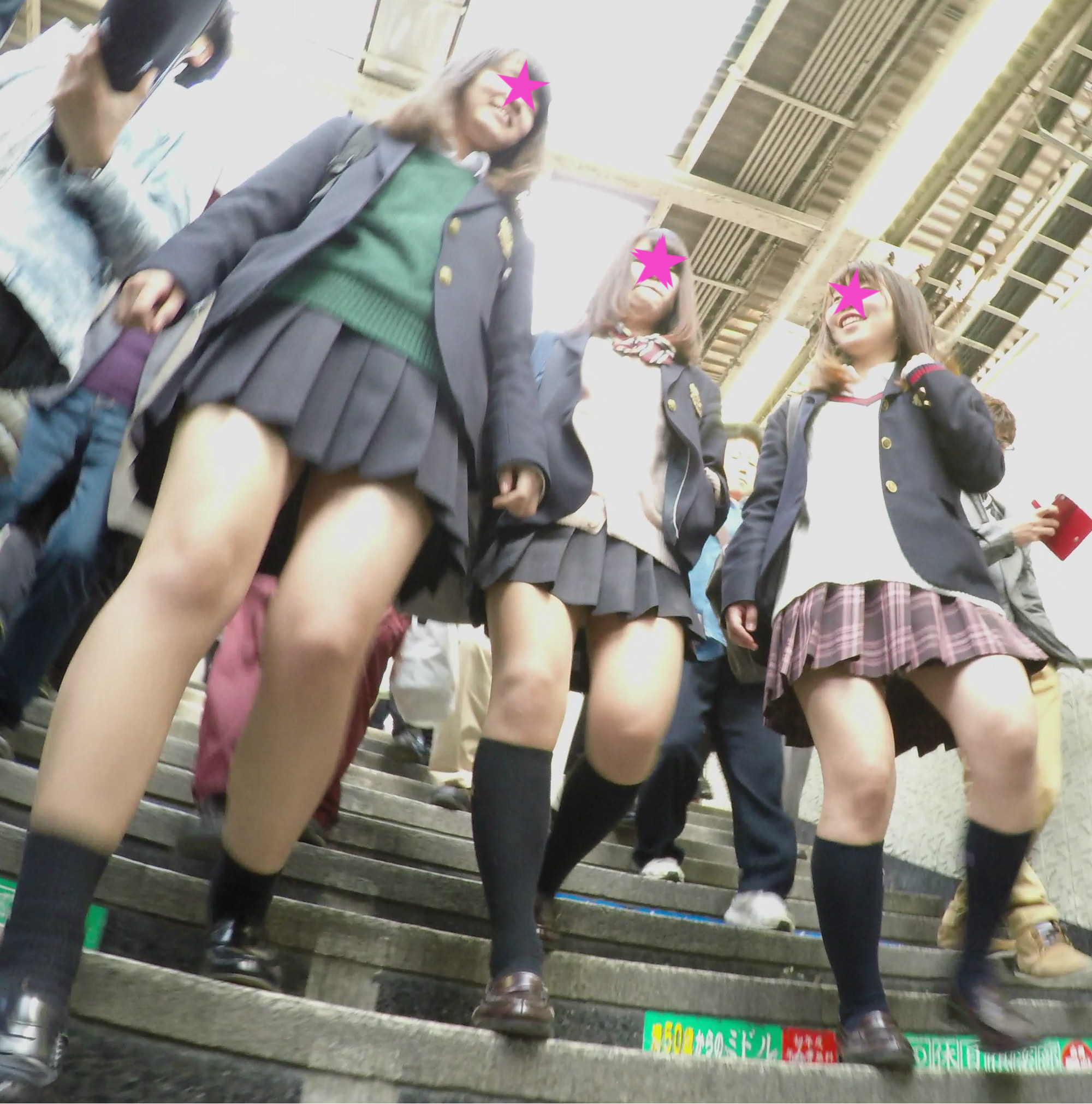 【高画質】女子高生パンチラ3組