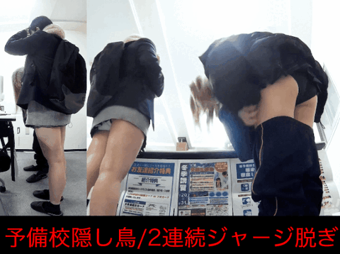 黒髪美脚美女まいがメインです。真っ白な美脚と黒髪ロングが堪らないのです。 今回マリエにめちゃくちゃ良いアクションがありましたので後半に追加。 講師Xは10分休み時に喫煙休憩を取るのですが、講師不在の間に例の二人が登校してしまいました。 寒空の中ジャージで登校している生徒 先生が居ないことを確認すると『ジャージ脱いでる!?』講師は僅差で教室に戻りギリギリ脱ぐ姿を確認できました。 まいも焦って相方のスカートを直してあげてます。 ※早期削除の可能性がございます。ご購入の際はお早めにお願い申し上げます。