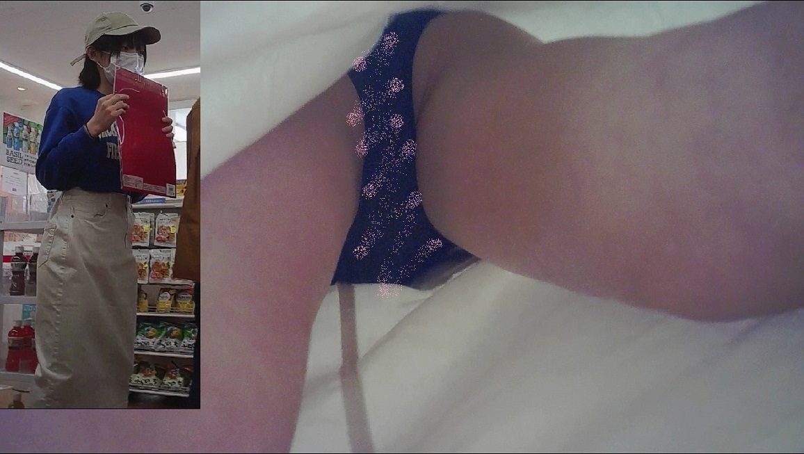 勝負の赤パンツ 店員さん 逆さ撮り ハミ