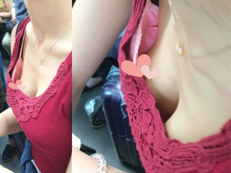 [胸チラ]家族旅行帰りの爆乳女子[顔有]