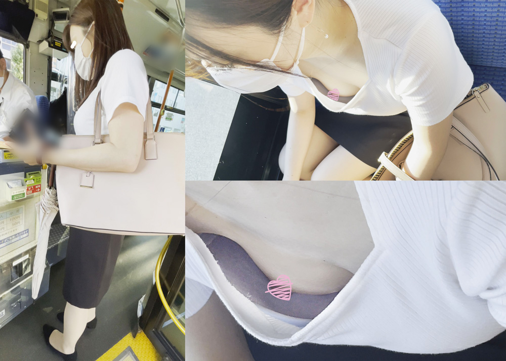 [市バス胸チラ]営業OLお姉さん、おっぱ