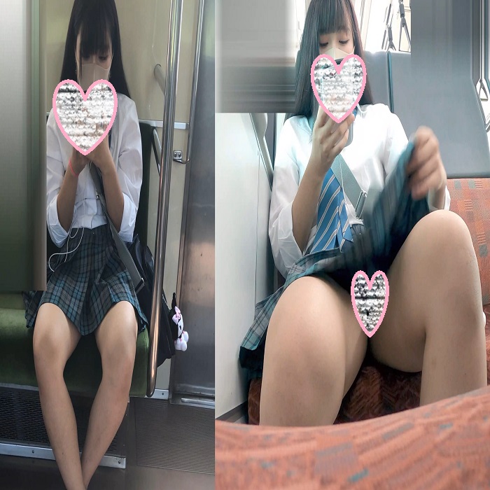 青チェ 正面まんこ 電車対面盗撮で純白の