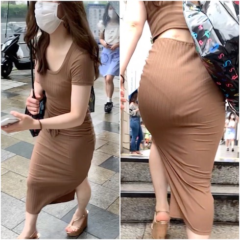 やや長めの膝丈下位のスカート。薄い生地なので光量は申し分なさそうです。長身なので〇をぶっこみやすそう・・・