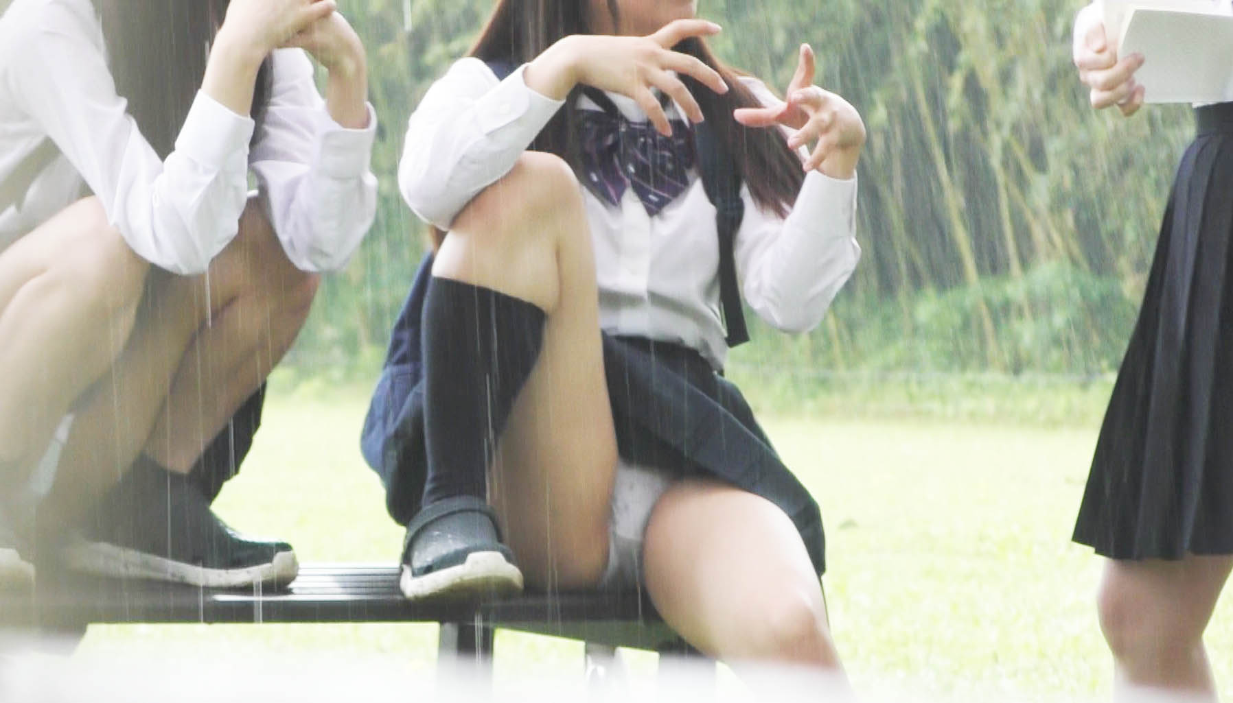 【望遠JK盗撮】雨で無防備パンチラ/某公