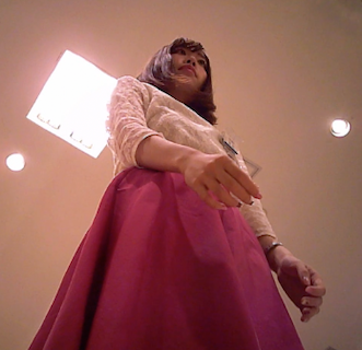 【自らスカート捲り上げ!露わになった太も
