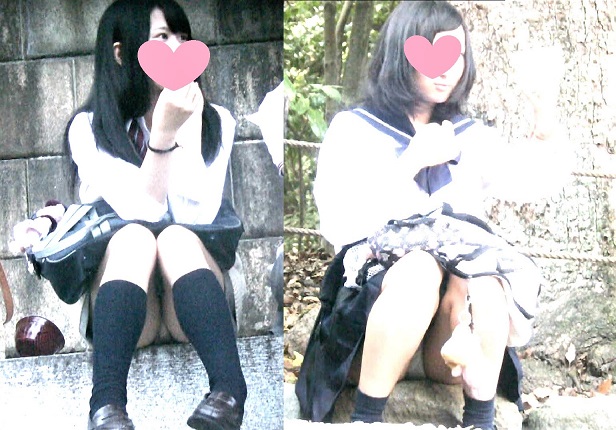 お祭りで座っている制服JK