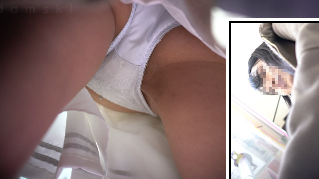 商品紹介です☆☆ 電車内風シチュでプリントを見ているモデル様です♪ 初めはカバンをお尻の方にされていたため引いたり寄ったりチラチラと…… その後は、カバンを前にまわして頂きバッチリと潜り込み接写させて頂いていますw 純白が目の前にv(頭、突っ込みましょう☆(笑)) 勿論!!可愛い刺繍もサイドも見える、前からのアングルも収録していますよ☆☆ 移動の際には、雰囲気だけでもエスカシーンもありますw