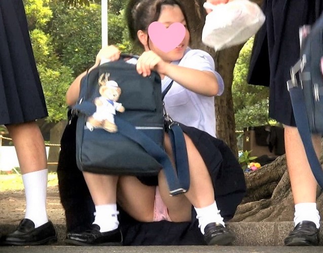 『顔出し』ギャルJKの激ミニスカを逆さ撮