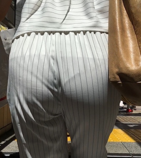 電車待ちで地面を濡らしてしまうお姉さん