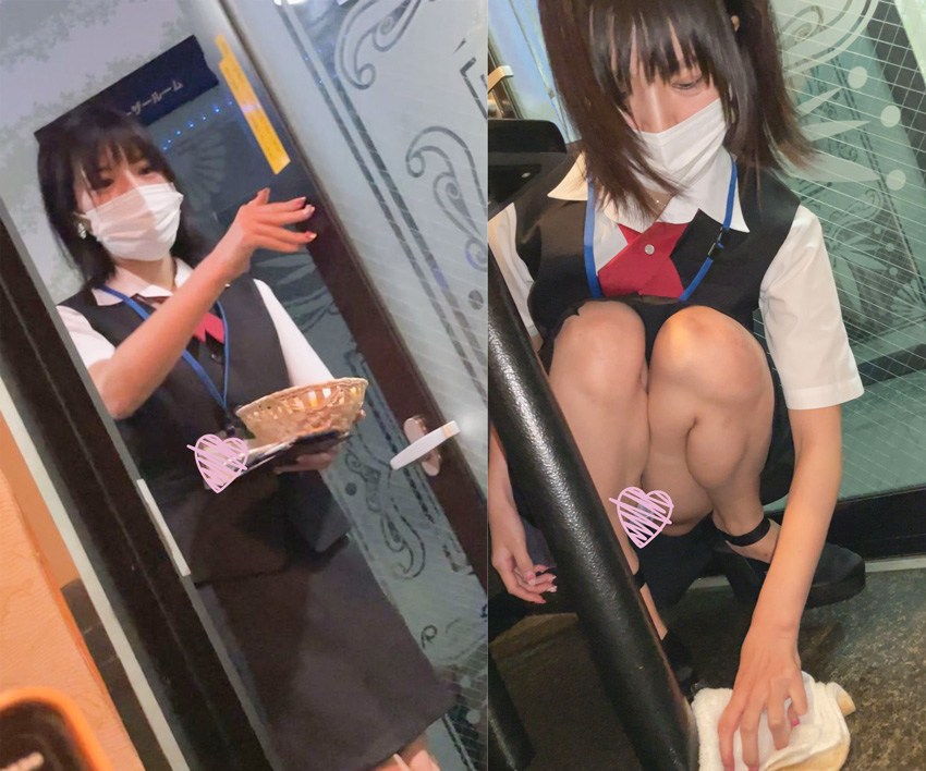 カラオケ店員さん白Tバックのエロ下着