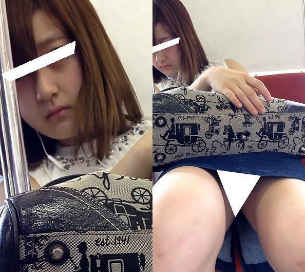 (電車対面)(顔出し)ミニスカートなのに
