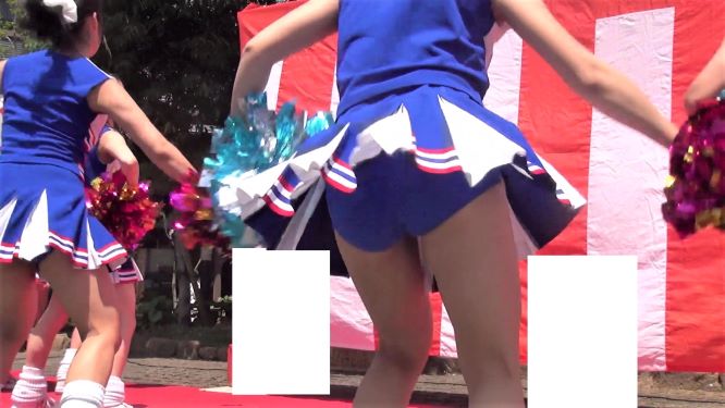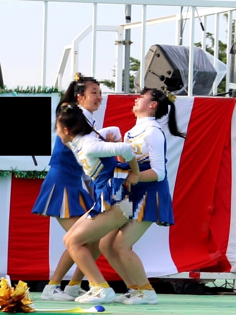 人気チアのアンスコがめくれて純白が丸見え