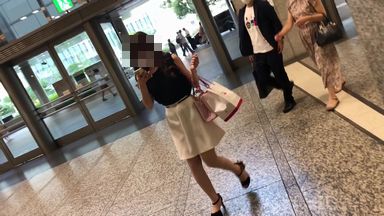 至福ギャルちゃんの盗撮風動画です。 中身は白のサテン生地。 内容は路上での逆さとエスカでの捲り鳥です。