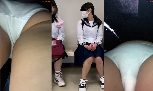 この日も前日と同じ程度の混雑具合でしたが、この娘の後ろに回るスペースがなく、まずはスカート内を前から検査します。 ところが、前日もそうでしたがスクールバッグを体の前で抱えて持っているため正面のガードが厳しい状態になっていました。 スクールバッグで足元が見えなくなっているところ、その下でスカート内へカメラを向けていましたが、次の駅でこの娘の後ろのスペースが空いたので移動です。