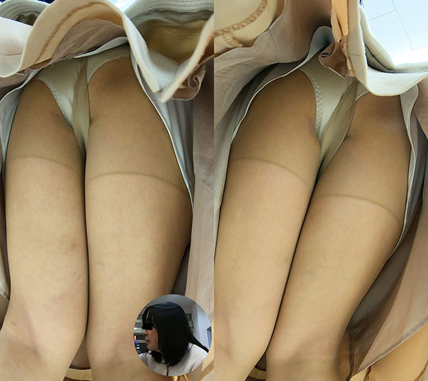 前日より日の入り方が良い環境になりましたので、おしゃべりしている背後から検査を続けます。 また、前日と同じようなパンツの状況でもしっかり確認することができるようにできる限りカメラを深めに挿し入れて撮影することも必要です。 ここまでこの娘は検査には特に気づいていない様子です。