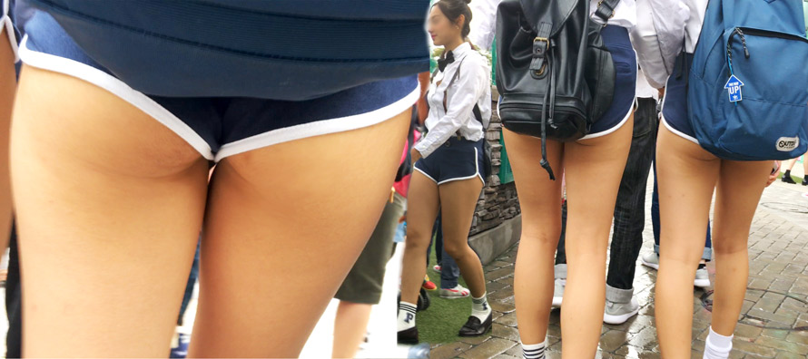 【4K街撮り】制服風はみ尻美形女子2人組