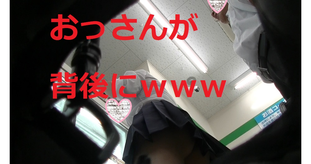 ミニスカJKの背後でおっさんが興奮してい